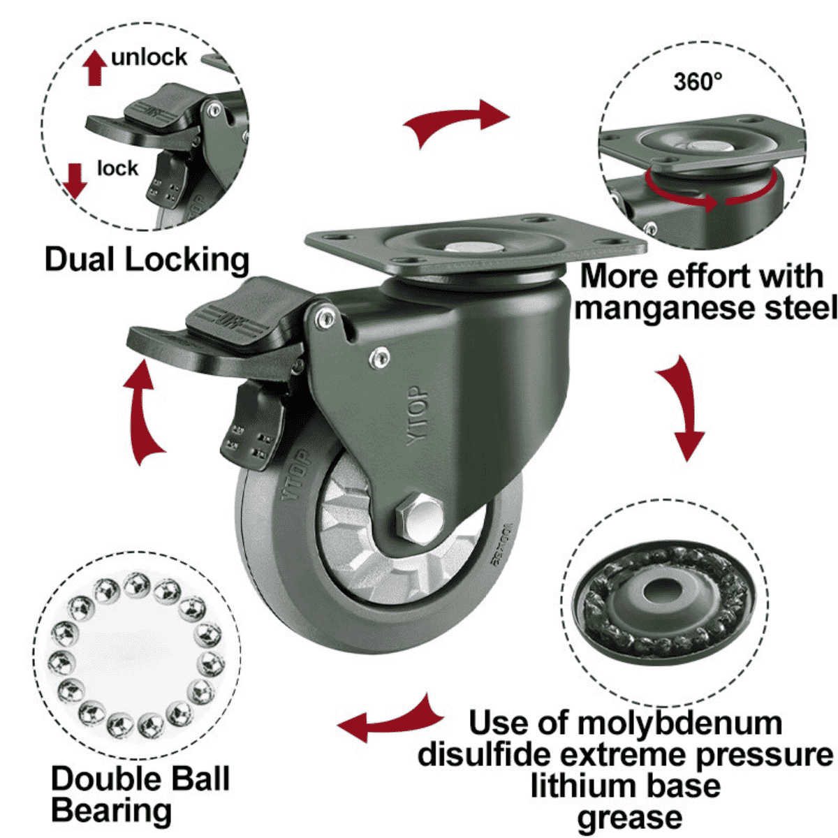 YTOP 5 inch gray rubber swivel brakes chair casters
